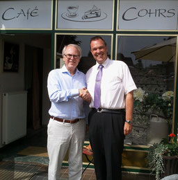 "Seite an Seite für die regionale Wirtschaft - Seite an Seite für Menschen in Not" - initiiert von Portal-Betreiberin Sylvia Wenig-Karasch fand im Mai 2013 im Café Cohrs in Schwiederstorf ein erstes Treffen mit Thomas Grambow, Schirmherr der Aktion JEDER EURO HILFT!, und Wilfried Kohrs, Exekutiv Direktor des Unternehmer Netzwerks BNI (Business Network International) Bremen statt.
